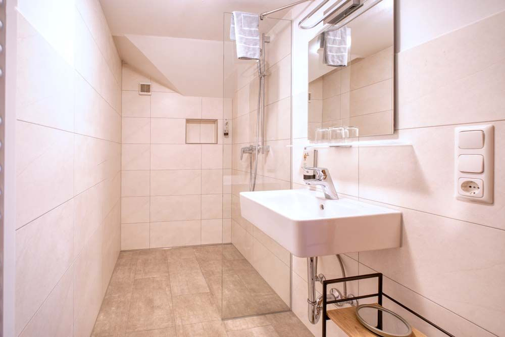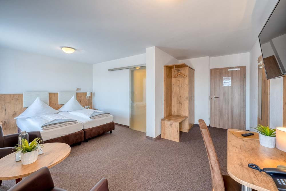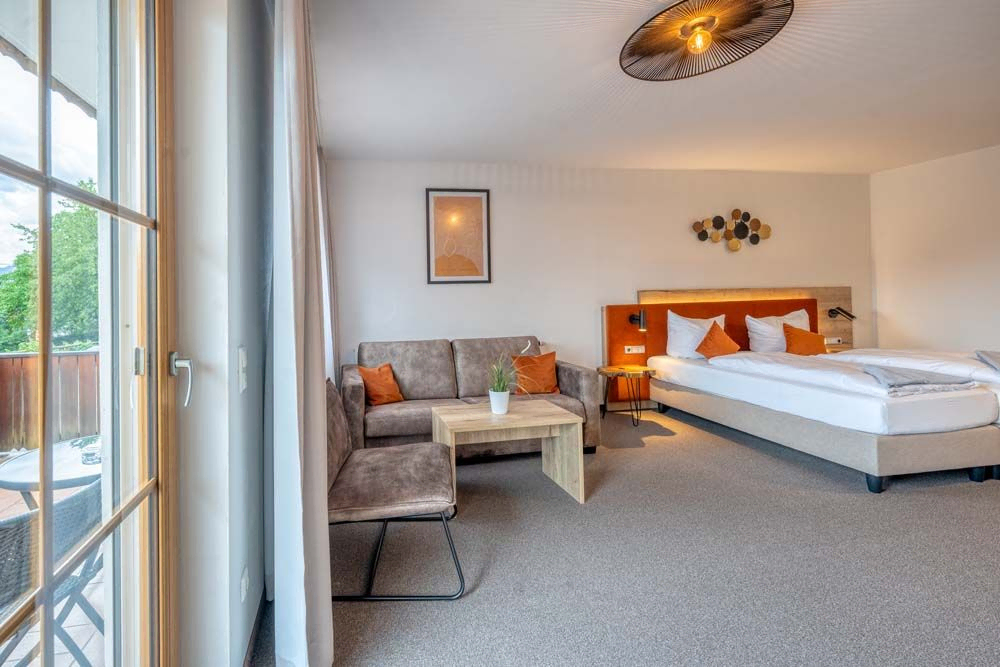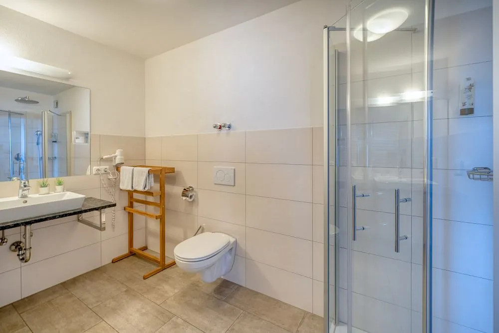 Unseren neuen und besonders geräumigen Doppelzimmer bieten unter anderem eine Terrasse oder einen Balkon, Dusche WC, Flat-TV, gratis WLAN, Haartrockner, Kosmetikspiegel und Kabel-TV.